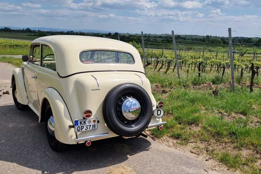 Im Allgemeinen Spargelclub haben unsere ehemaligen Mitglieder Dagmar und Klaus mit ihrem Opel Olympia-Rekord Baujahr 1956 schon vor etlichen Jahren die Weinrallye regelmäßig gefahren und immer begeistert darüber erzählt. Dieses Jahr wollten wir mit vier Teams aus dem Spargelclub daran teilnehmen. Leider hat das Schicksal es anders gewollt. Das Team Herbert und Hubi fiel wegen einer Hüft-OP aus, Mike wurde zwar als Teilnehmer zugelassen nicht aber sein BMW 2002 Bauer Cabrio Bj. 1975 weil es zu jung ist. Kurz bevor es los ging wurde dann noch Martina krank so dass Jörg auch wieder absagen musste. Übrig blieben Christiane und Artur mit ihrem Opel Olympia Baujahr 1937, die unseren Freund Mike einfach als dritten Passagier mitnahmen. (Einer mehr zum Anschieben, falls es nötig wird 😉) Hubi und Herbert sind auch nach Maikammer gefahren aber mit dem normalen Auto und sie haben als Zuschauer teilgenommen und die Fotos beim Start gemacht.